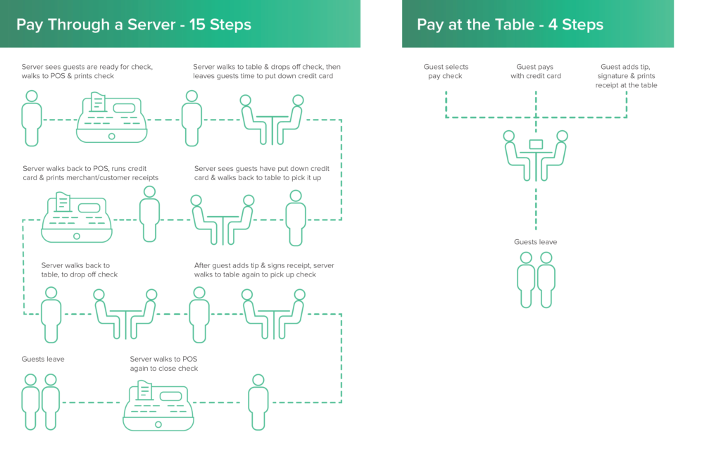 With the pay at the table functionality through the Ziosk platform, these steps are reduced by 73% – see the graphic below: