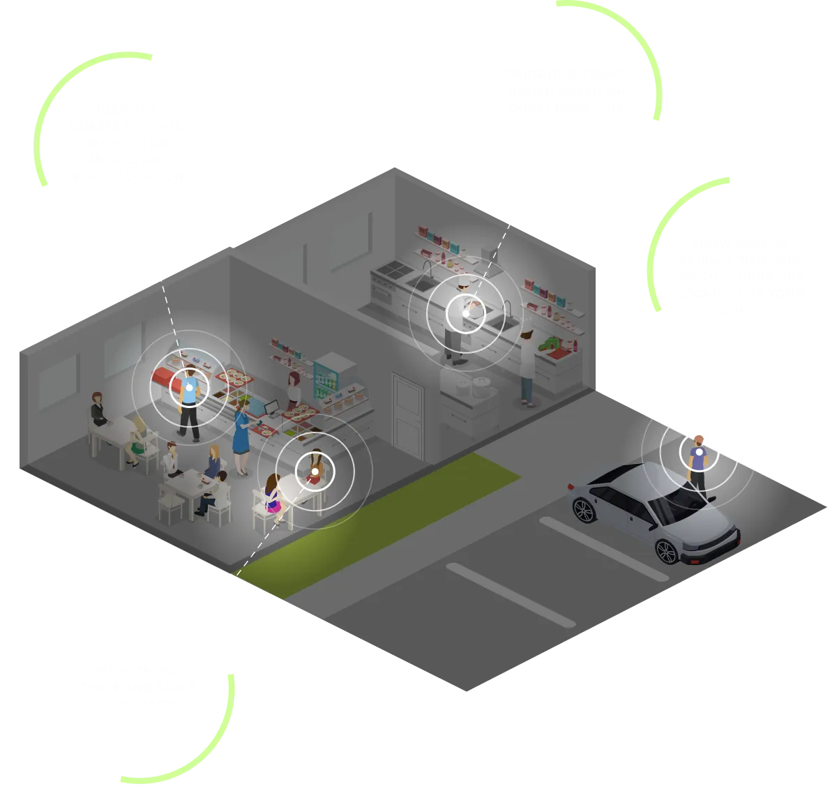 DigiSite uses industry-leading location intelligence to give guests the highest quality experience without the wait. With unparalleled precision, it identifies locations within an 18-inch radius, both on and off premise, translating real-time guest positioning into seamless service.